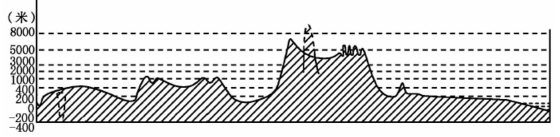 4、单选题 图为某大洲沿纬线的地形剖面示意图,据此完成问题