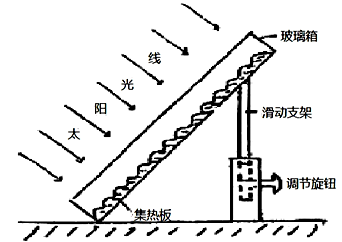 5、单选题 北京(40°N)某校一学生在研究性学习活动中,对太阳能热水器进行了重新设计(如图),把热水器装在一个大玻璃箱中,并将支架改造成活动方式。据此完成下列小题。