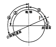 【小题2】黄赤交角的度数为回归线的纬度,图中P点位于北回归线上。太阳在夏至日直射北回归线。