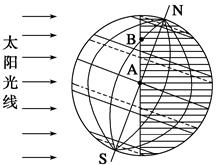 5、综合题 图中的AB线表示晨昏圈的一部分,此时地球公转速度较快,回答:(5分)