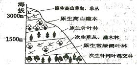 点评:本题难度低,学生只要掌握山地垂直自然带的分布与纬度地带性的自然带分布基本一致,结合垂直自然带的分布规律可判断原生植被的分布。