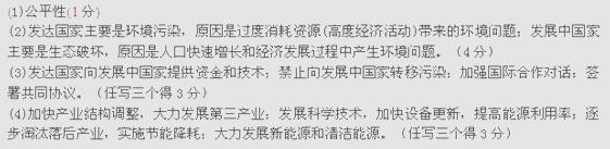 (3)请结合上图说明发达国家和发展中国家应对全球环境问题合作的途径有哪些?(3分)