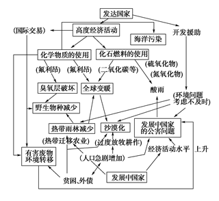 2、综合题 全球环境问题相互联系和相互制约,使人类面临的各种环境问题构成了一个复杂的环境问题群。读图回答下列问题。(11分)