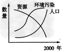 (1)图中三条曲线表示20世纪的人口曲线呈_______状,资源曲线呈________状,环境污染曲线呈_______状。