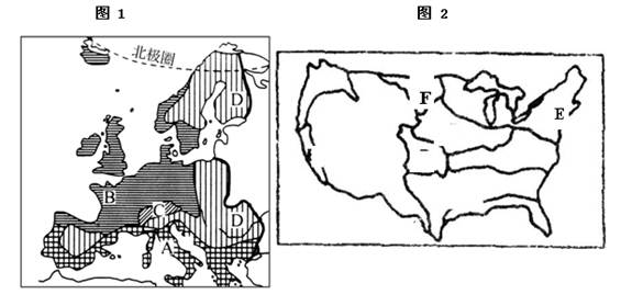 (4)在图2所在国家的农业带中,F所代表的农业带为?(春小麦或冬小麦),E所代表的农业带为?,其中E分布在该国家东北部的原因是?(8分)