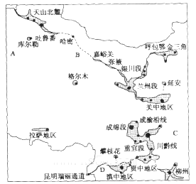 1、单选题  读下图 “我国西部地区综合产业带的空间分布图”。回答下列各题。?