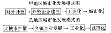 5、单选题 下图为甲、乙两地区城市化发展模式图,读图并回答1—2题。