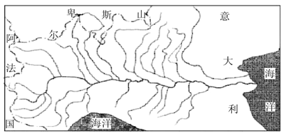 材料二?波河是意大利最大的河流,水量充沛,常发生大洪水,流域面积约为7.5万平方千米,流域内水能资源丰富。该河流中下游流经著名的波河大平原(该平原西部和北部接高大连绵的阿尔卑斯山脉,南临亚平宁山脉),没有进行大规模的开发。