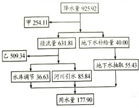 1.图中的甲和乙分别代表2.该省区可能是3.据图推断,该省区水资源利用过程中最可能出现的问题是