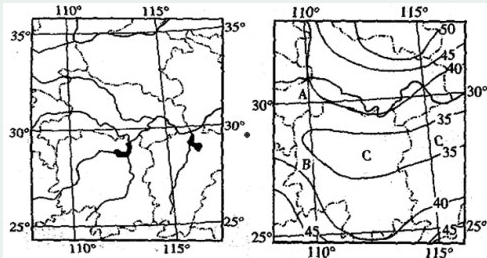 【小题1】通过经纬网定位,判断该地区为长江中下游,故可知该地区河流水文特征为多支流、水量大。