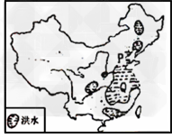 2、单选题 读我国旱涝灾害分布示意图,回答下面1-2题。