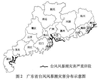 4、单选题 台风是广东省主要的气象灾害。读图,并结合相关知识,回答下列选项中,台风风暴潮灾害严重的岸段位于
