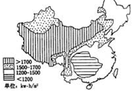 本题考查中国省级行政区的位置和范围。根据图示:我国太阳辐射最丰富的为西藏,最缺乏的四川。所以本题选择B选项。