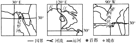 4、单选题 下图为北纬30°附近部分区域图。读图完成1—2题。