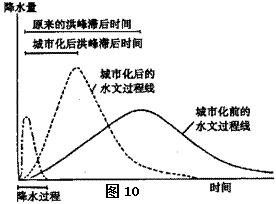 2、单选题 读图10回答,导致城市水文过程线提前的因素有
