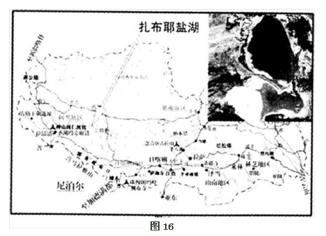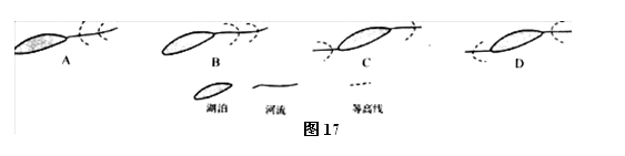 (2)图17中反映扎布耶盐湖水系特征的是_________。(2分)