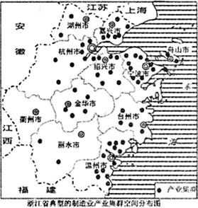 (2)简述浙江省制造业产业集群的空间分布特征,并简要分析产业集聚的主要优势。(6分)