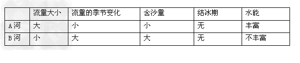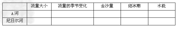 (4)根据材料对比A河和尼日尔河的水文特征,完成下表。