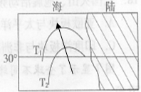 2、单选题 下图为世界某大陆西岸沿海地区,T1、T2为洋流流经区域的等温线。据图回答下列问题。
