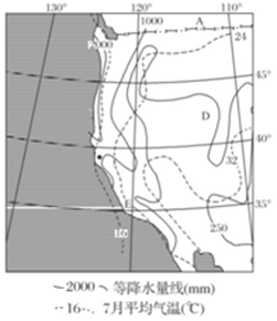 (1)本题考查世界的海陆分布。根据图中的经纬度确定,图中陆地为北美大陆,所以西侧海洋为太平洋。A地所在国家为加拿大,加拿大分布面积最广的植被类型是亚寒带针叶林