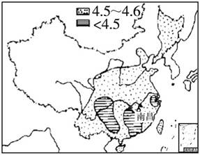 4、综合题 读我国酸雨分布图,回答下列问题。