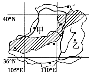 小题3:图中乙处位于黄土高原地区,由于植被破坏,最突出的生态环境问题是水土流失,A对。这里位于半湿润地区,夏季暴雨集中,降水较多,荒漠化不是主要生态问题,B错。土地盐碱化主要发生在干旱、半干旱区,这里水土流失严重,形不成盐碱化土地,C错。土壤酸化问题在我要南方比较严重是,不是在北方地区,D错。