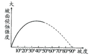 小题2:坡度在40°一90°,坡面侵蚀强度随坡度的增加而减小,其原因是(?)