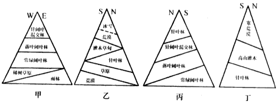 1、单选题 读甲、乙、丙、丁四幅山地垂直自然带分布图,已知甲地位于南半球,乙、丙、丁三地位于我国。据此回答1—3题。