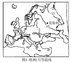 3、单选题 读图4“欧洲1月等温线图”,回问题。
