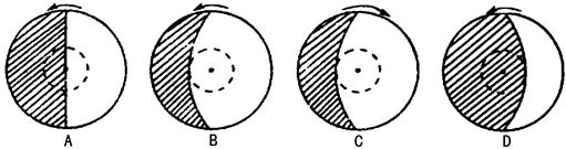1、单选题 下列四幅昼夜分布图中(阴影部分表示夜半球),表示北半球夏至日的是