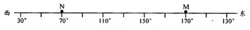 1、单选题 下图为南半球的一段纬线,图中M、N两点为北半球夏至日晨昏线与该纬线的交点。读图回答下列各题。