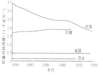 ③若按目前的趋势发展,2000年中国能耗强度将达到美国的水平