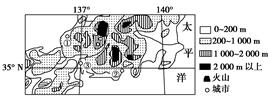 小题2:根据图例的海拔高度分布特征,该地区以200—1000米之间的丘陵、山地分布面积最为广泛,故D项正确;