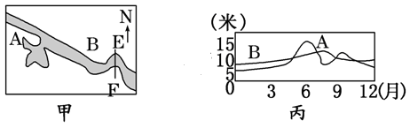 3、单选题 下图中甲是我国东部河流某河段示意图,丙是河流A、B两水文站测得的水位变化图。据此完成下题。