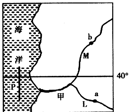 1、单选题 下图为甲河示意图,M、L表示甲河的支流,a、b是位于支流上的两个观测站所属,粗线P表示洋流。下表为a、b两个观测站的气温(单位:℃)和降水(单位:mm)资料表。据此完成1—3题。