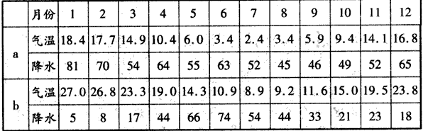 A.在a观测站降水量最大的月份,a地的日出时间比b地的晚