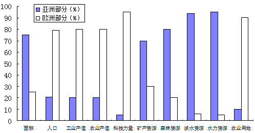 (3)据材料三,评价俄罗斯亚洲部分发展经济的优势条件。(2分)