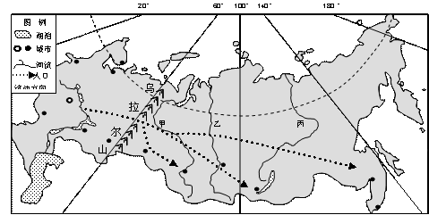 (1)据材料一,说出俄罗斯东西向的主要交通方式?并分析主要原因有哪些?(3分)