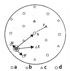 4、单选题 下图所示是某研究性学习小组对一个地区的城市聚落分布进行模式化处理得出的图像,其中有省政府驻地、地级市政府驻地、县政府驻地、县级市政府驻地,甲区域分布着若干乡村聚落。读图回答下列题。读图回答题。