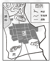 3、单选题 下图示意某城市交通、工业区的分布。读图,完成1—2题。