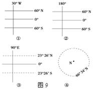 4、单选题  图9为“世界四大洋主体位置示意图”,据此回答问题。