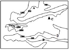 3、单选题 该图为某区域等高线分布状况,等高距为200m。完成问题。