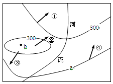 小题1:图中箭头正确表示河流集水方向的是