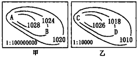 1、单选题 读两幅等压线图,A、B、C、D四处风力最大的是