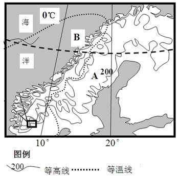 【小题1】根据气温分布推测图示地形区的大致走向是( )