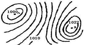 4、综合题 读北半球的海平面等压线分布图,完成下列要求。
