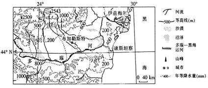考点:本题以多瑙河下游平原为背景考查区域地形、气候等自然环境特征及交通区位因素。