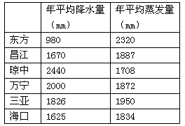 【小题1】干燥度是指可能蒸发量与降水量的比值,根据表格数值分析,干燥度最大的是东方,最小的是琼中,干燥度分布最明显特征是西部大于东部,D对。