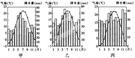 小明:图中三个城市分布在欧洲东部,年降水量较少,且甲、乙两城市的最冷月气温都低于O℃,因此,三城市都属于温带大陆性气候。