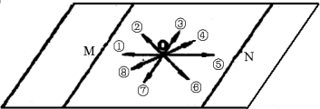 2、单选题 下图为某一等高面。M.N为等压线,其气压值分别为PM.PN,M.N之间的气压梯度相同。①~⑧是只考虑水平受力,不计空气垂直运动时,O点空气运动的可能方向。回答下列各题.